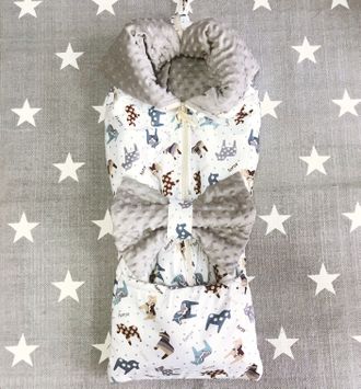 Снаружи это идеальный конверт, красивый, симпатичный глазу, можно использовать на выписку, нарядно украшен бантом, который может в дальнейшем использоваться, как мини-подушка для крохи. Конверт на удобном замке, который легко свернуть и развернуть в одеяло! Внутри мягкий и нежный плюш.