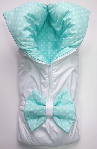Снаружи это идеальный конверт, красивый, симпатичный глазу, можно использовать на выписку, нарядно украшен бантом, который может в дальнейшем использоваться, как мини-подушка для крохи. Конверт на удобном замке, который легко свернуть и развернуть в одеяло! Внутри мягкий и нежный плюш.