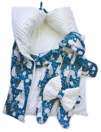 Комплект осень-зима, конверт и комбинезон - Мишки на бирюзе