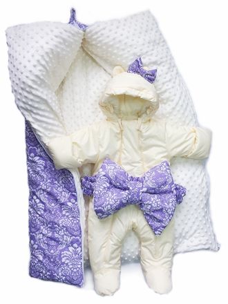 Комплект осень-зима, конверт и комбинезон - Чешский хлопок лаванда
