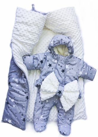 Комплект осень-зима, конверт и комбинезон - Серые звезды на сером