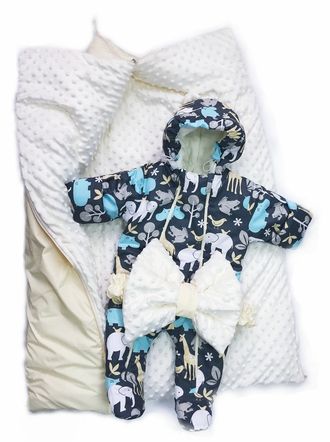 Комплект осень-зима, конверт и комбинезон - Зоопарк