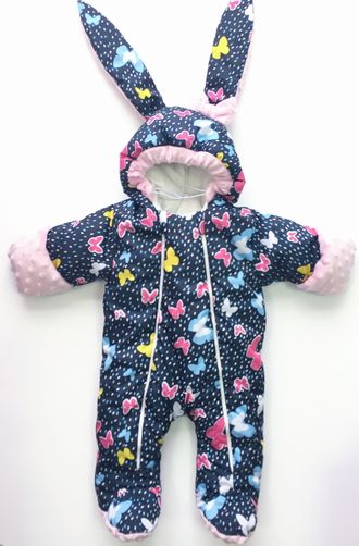 Комбинезон демисезонный - "Бабочки", ушки зайки