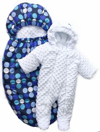 Комплект осень-зима, конверт-кокон и комбинезон - Синий горох