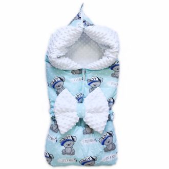 Снаружи это идеальный конверт, красивый, симпатичный глазу, можно использовать на выписку, нарядно украшен бантом, который может в дальнейшем использоваться, как мини-подушка для крохи. Конверт на удобном замке, который легко свернуть и развернуть в одеяло! Внутри мягкий и нежный плюш.